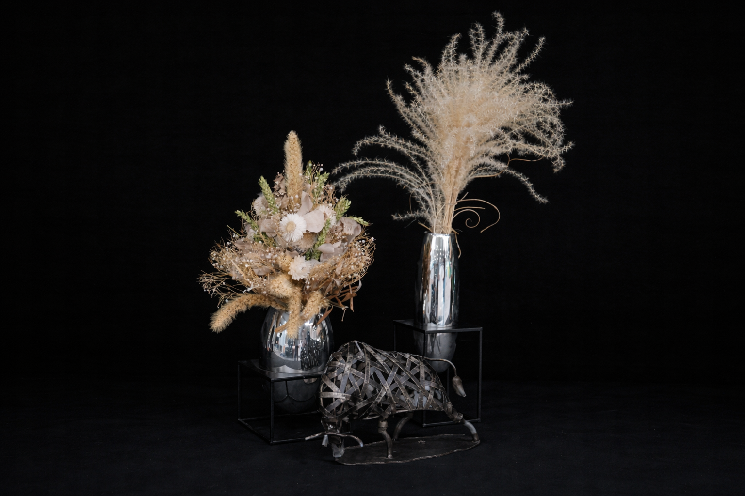 Dekorationsset med konstgjord blomma och figur
